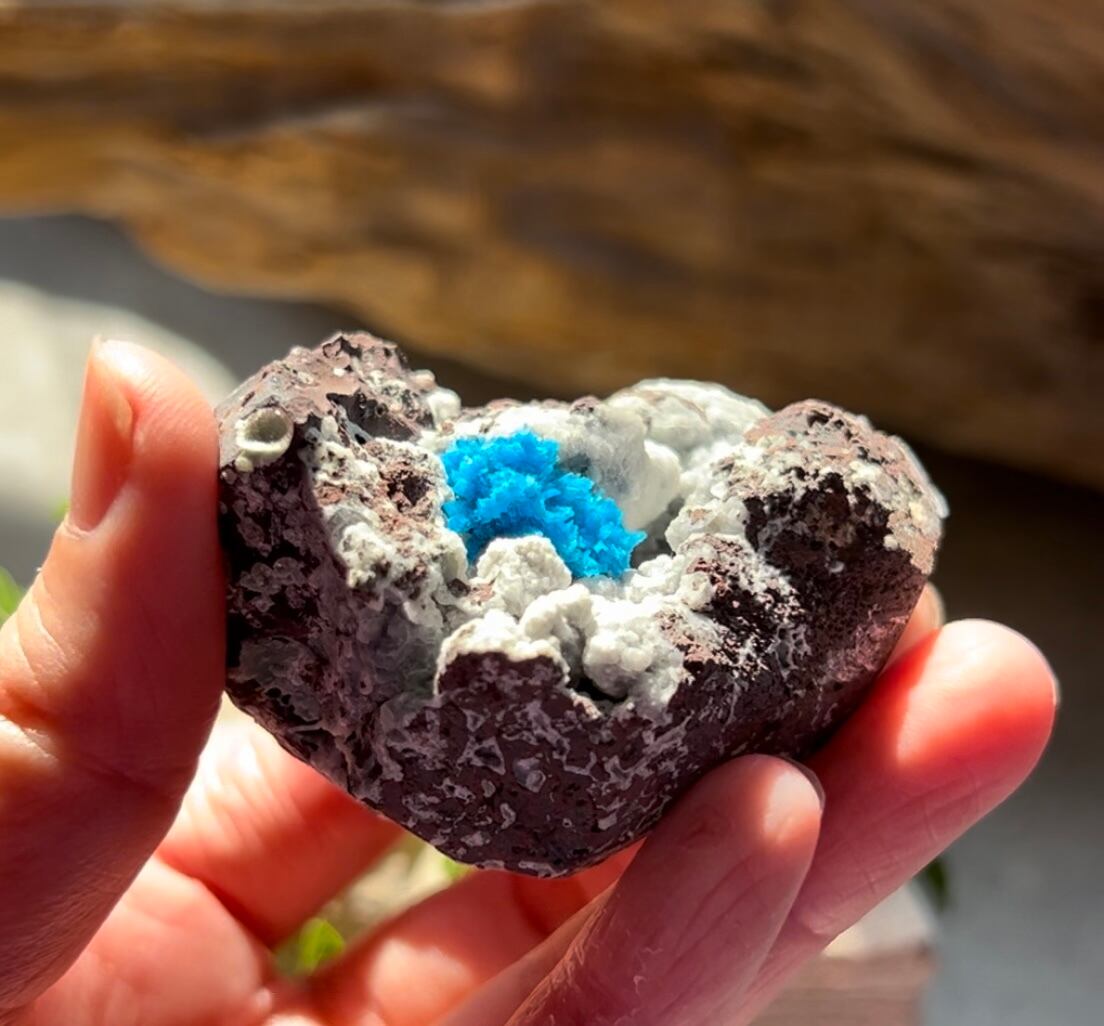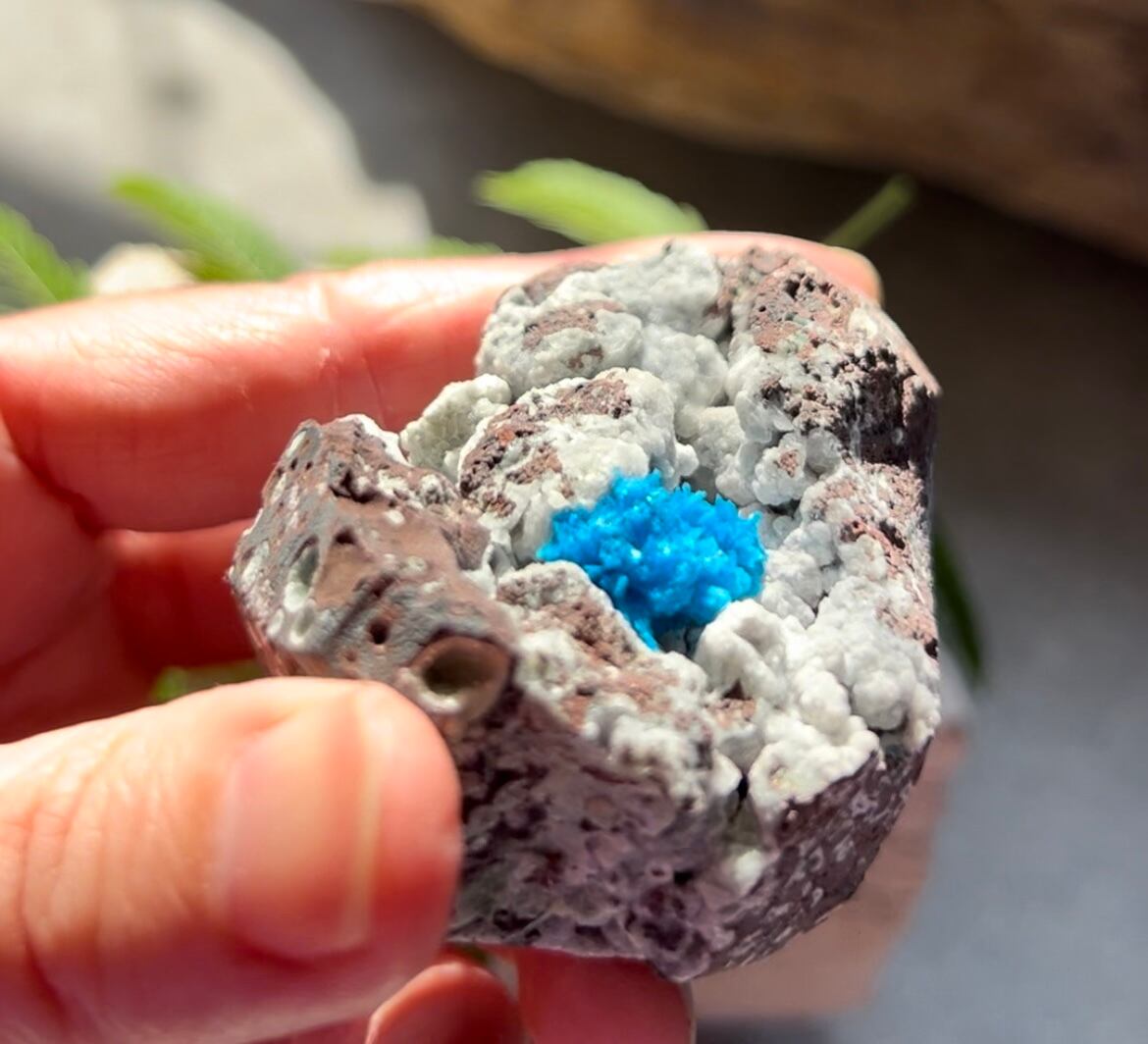この美しいブルーの発色はバナジウムによるものでカンバサイトという名前はカルシウム、バナジウム、シリコンの頭文字を組み合わせて名づけられました